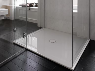 Positioning a pre-made tray onto a leveled bathroom floor, and then securing and sealing it to prevent water leakage.